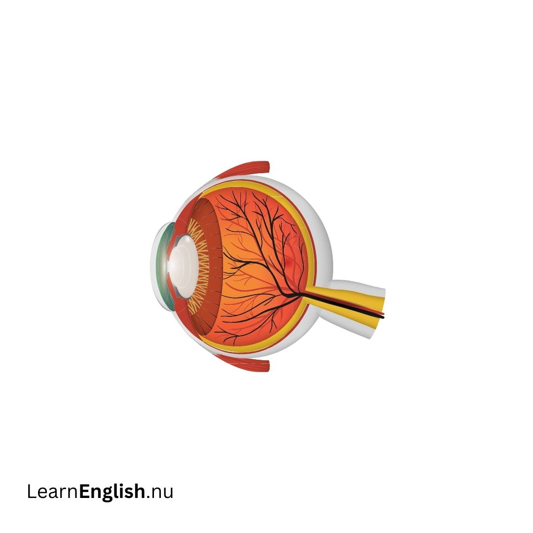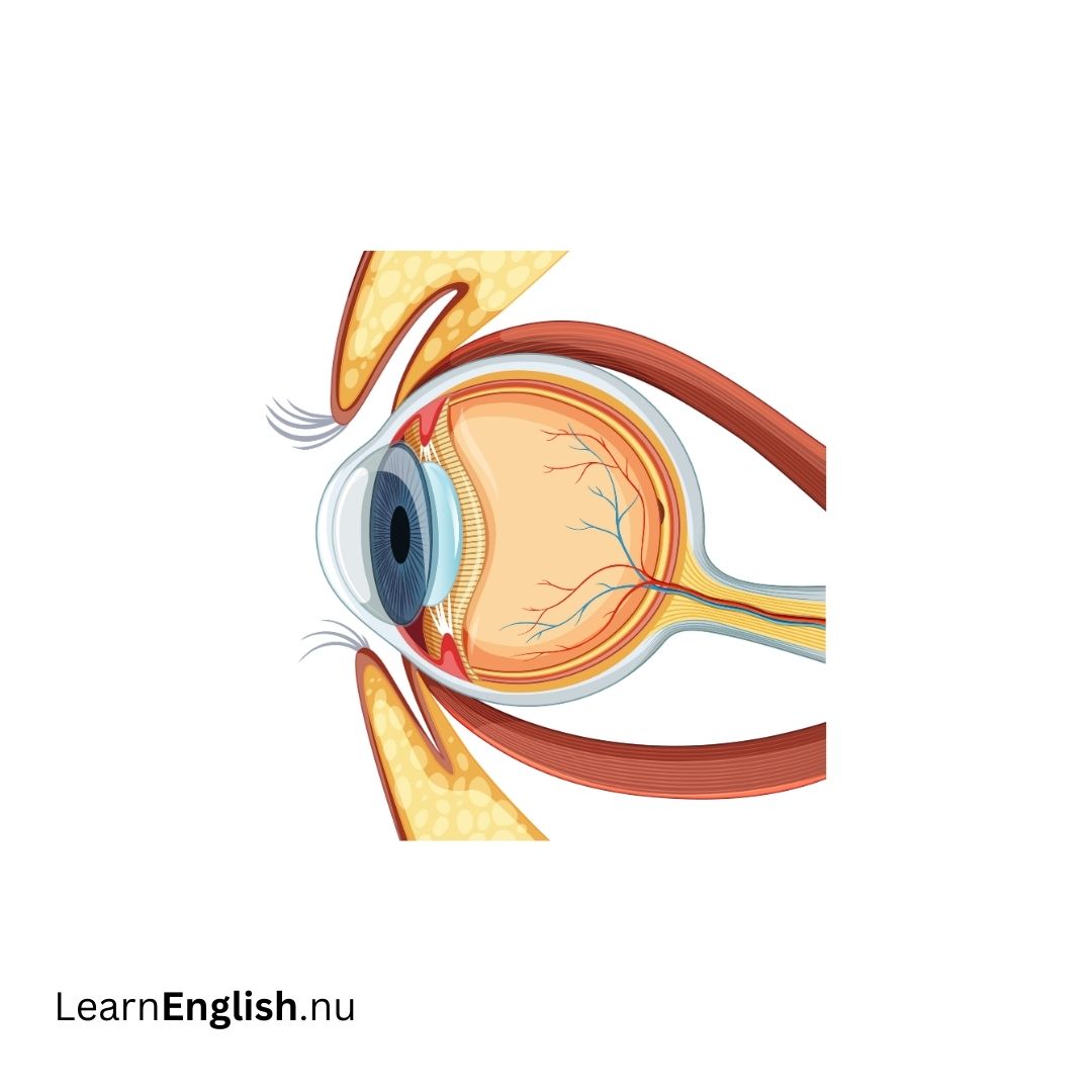 The front part of the eye is essential for focusing light. It includes the cornea (hornhinna), anterior chamber (främre kammare), iris (iris), pupil (pupill), and lens (lins).