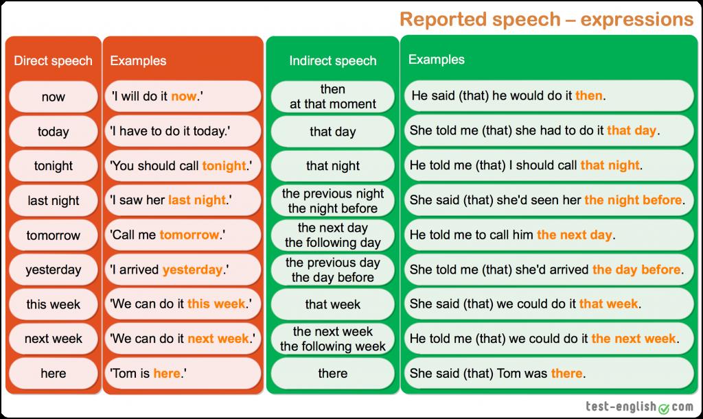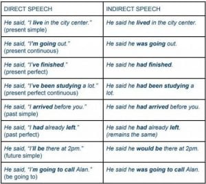 امثلة على قاعدة reported speech
