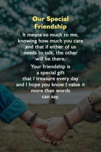 - I don’t want this bond of friendship to ever break. You’re a friend like no other. لا اريد ان تنكسر علاقتنا الصدوقة، لا يوجد صديقة مثلك. You’re more family