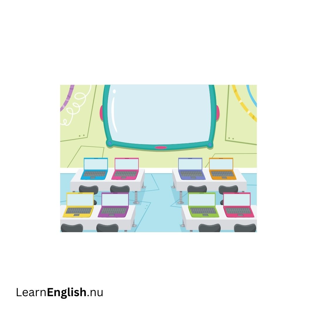 - Computer Room: Datorrummet är fullt av nya datorer. (The computer room is full of new computers.)